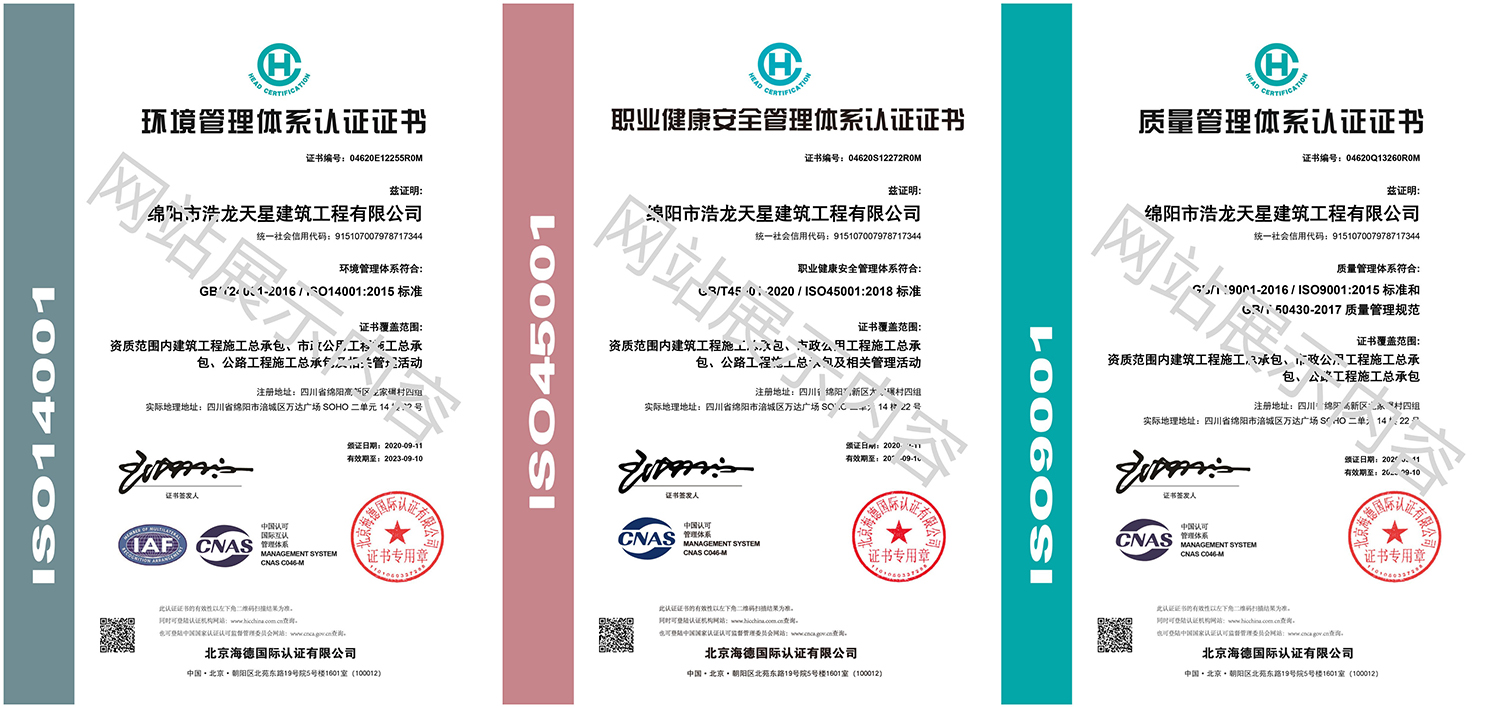 浩龍?zhí)煨浅墙瘓F(tuán)有限公司,2007年成立于“李白故鄉(xiāng)、中國(guó)科技城”—四川省綿陽(yáng)市,企業(yè)注冊(cè)資本金5.0008億元。公司共有27項(xiàng)建筑業(yè)企業(yè)資質(zhì),其中國(guó)家一級(jí)資質(zhì)11項(xiàng),二級(jí)資質(zhì)10項(xiàng),三級(jí)資質(zhì)5項(xiàng),特種資質(zhì)不分等級(jí)1項(xiàng),類別涵蓋建筑、市政、水利、機(jī)電、隧道、起重設(shè)備安裝等基礎(chǔ)及未來(lái)發(fā)展重點(diǎn)專業(yè)。公司...